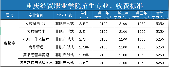 重庆经贸职业学院是重庆市人民政府批准,教育部备案,重庆市教委主管的全日制普通高等职业院校;是国家级众创空间、重庆市大学生创业示范基地、重庆市五四红旗团委、重庆市职业技能等级认定社会培训评价组织、重庆市外贸职业认证考点、重庆市服务外包人才培训点、重庆市建筑岗位培训考试点、高等学校英语应用能力考试点。学院目前设有财经与商贸学院、大数据学院、交通工程学院、教育与健康学院、智能工程学院、人文科学学院和创新学院共7个教学单位;有学前教育、大数据与会计、大数据与财务管理、电子商务、市场营销、汽车制造与试验技术、大数据技术、数字媒体技术、婴幼儿托育服务与管理等34个招生专业,面向全国招生。